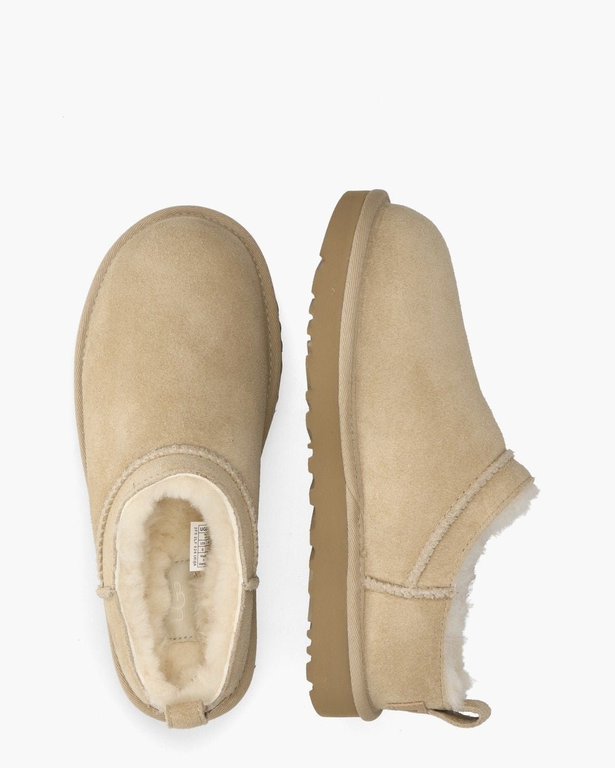 - Woven UGG® label on the insole, embossed UGG® logo on the leather heel tab